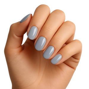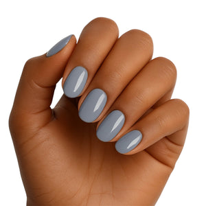 Soft steel, big impact. Steel The Show is a moody blue‑grey with a sleek glossy finish and a rounded shape that keeps it cool, clean, and wearable. The color shifts subtly between stormy blue and modern grey depending on the light—effortlessly edgy without trying too hard.